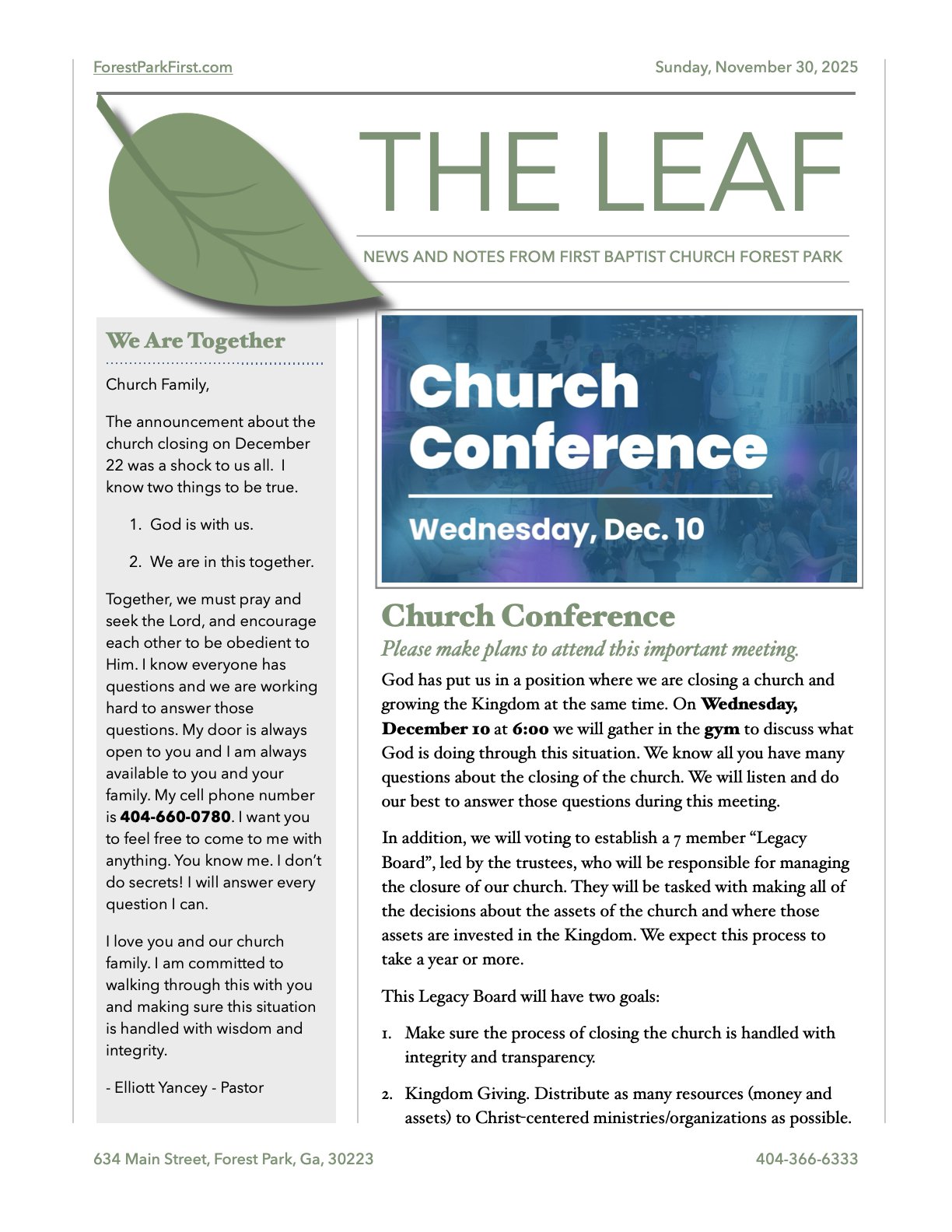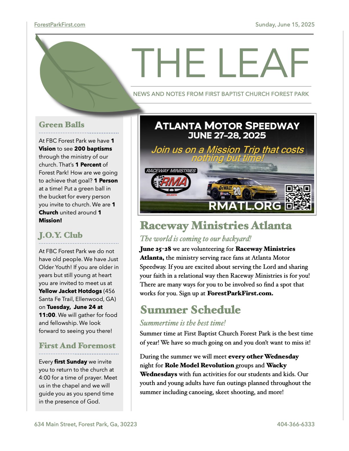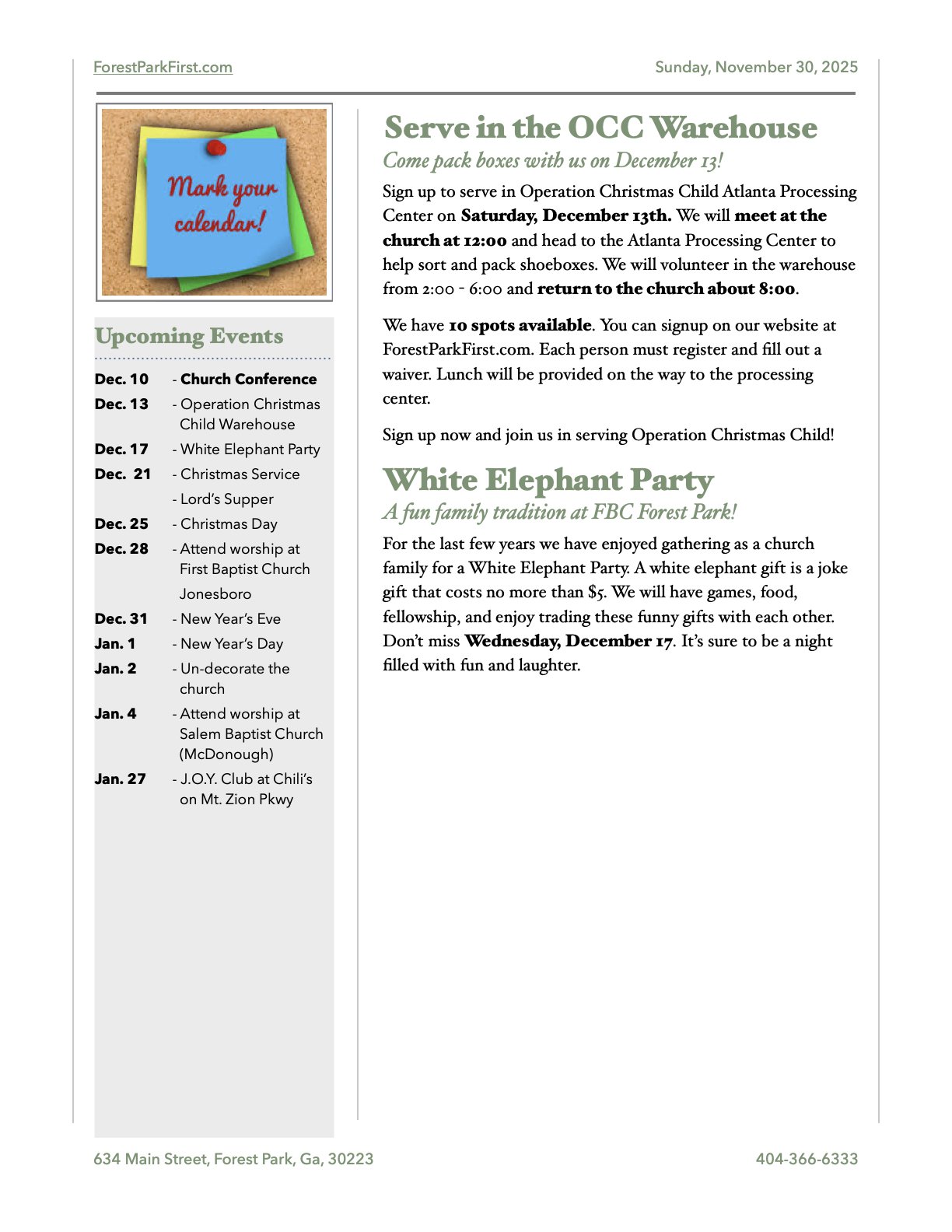 What's happening at First Baptist Church Forest Park?